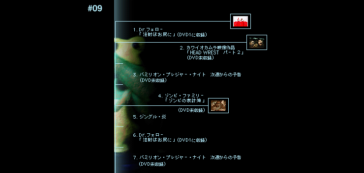 マラソン ニュース 束芋映像作品 ニュース ミッドナイトクッキング ニュース ニュース フーコンファミリー 大西ゆかり ゾンビ・ファミリー 江村映像作品 フーコンファミリー ワンポイント英会話 エンニオ・マルケット MAMA! MILK 束芋映像作品 ザ・グレートアニマル フーコンファミリー ニュース ゾンビ・ファミリー Dr.フェロー ゾンビ・ファミリー 次週からの予告 Dr.フェロー 次週からの予告 カワイオカムラ映像作品 キュピキュピ ゾンビ・ファミリー 次週からの予告 束芋映像作品 次週からの予告 カワイオカムラ映像作品